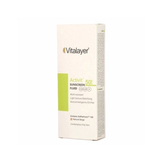 " />فلوئید ضد آفتاب رنگی پوست چرب (بژ طبیعی ) Activit SPF50 ویتالیر 50ml
