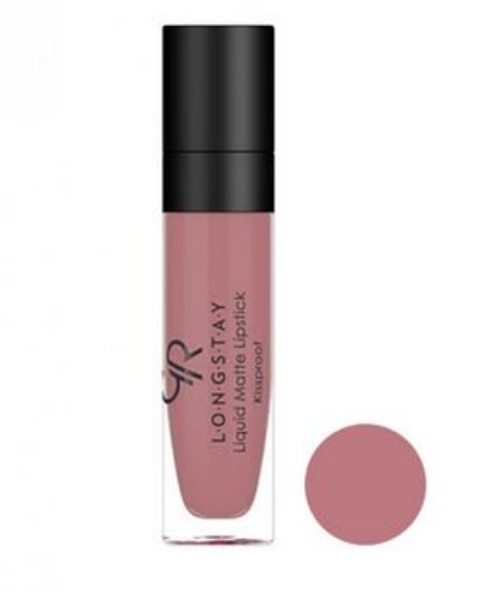رژ لب مایع مات لانگ استی گلدن رز با نام کامل تجاری Golden Rose Longstay Liquid Matte Lipstick عرضه شده است. دارای پیگمنت غنی، بافت مایع و سبک با جلوه مات و مخملی است. دارای نرم کننده طبیعی، حاوی ویتامین E و روغن آووکادو بوده و ماندگاری بالایی دارد. مانند وانیل دارای رایحه ملایم و شیرینی است. ایجاد چسبندگی نکرده و به سرعت روی لب خشک میشود. اپلیکاتور نرم و انعطاف پذیر داشته که برای لبهای حساس مناسب است.